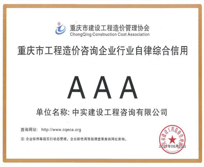 喜報(bào)!中實(shí)咨詢榮獲造價(jià)咨詢企業(yè)AAA級(jí)行業(yè)自律綜合信用評(píng)價(jià)等級(jí)